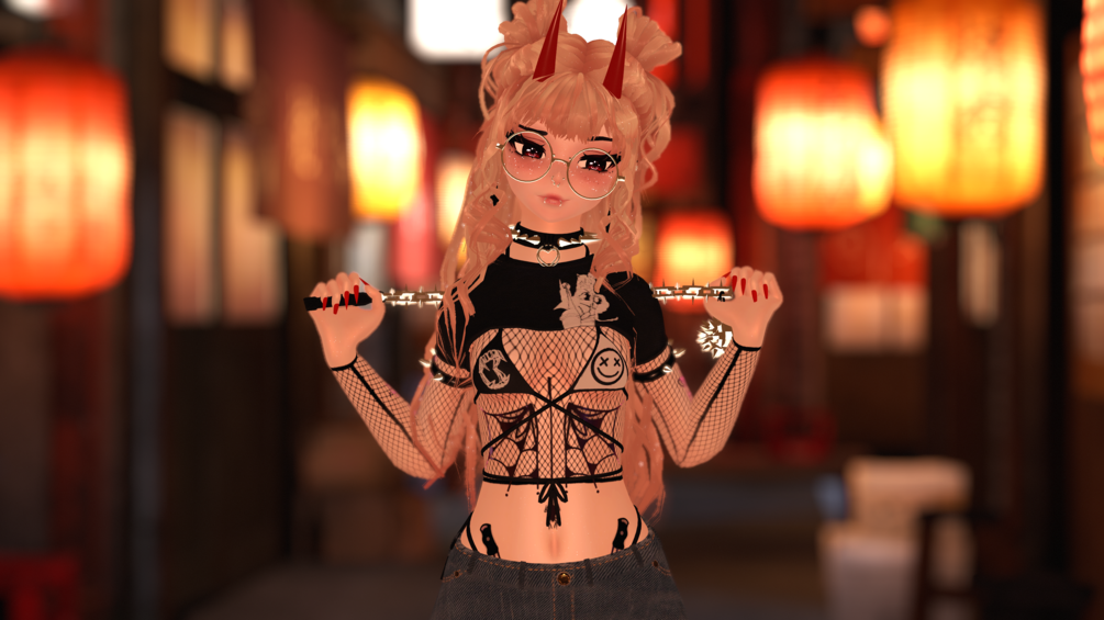 ✎ horns, tail, glasses, eyepatch, choker, leash, arm bands, leg strap, tail, flail >:𝟑